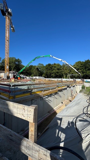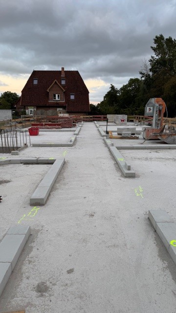 Der Beton für die Bodenplatte wurde gegossen.